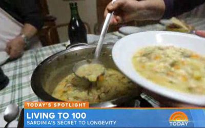 Tra i piatti sardi che fanno impazzire l'America, spicca una new entry, anche se non così goduriosa come porcetto e vino: il minestrone sardo, ideato dalla famiglia Melis (la più longeva al mondo), che conquista un intero capitolo del libro di Dan Buttner. Anche l'emittente televisiva NBC dedica al piatto una video ricetta in cui si spiega come preparare il minestrone dei centenari con legumi, verdure dell'orto e fregola. Oltre al buon cibo, comunque, per arrivare a 100 anni, è bandita la vita sedentaria; bisogna fare movimento e, se possibile, coltivare un piccolo orto, attività che aiuta a essere più longevi e rilassati.