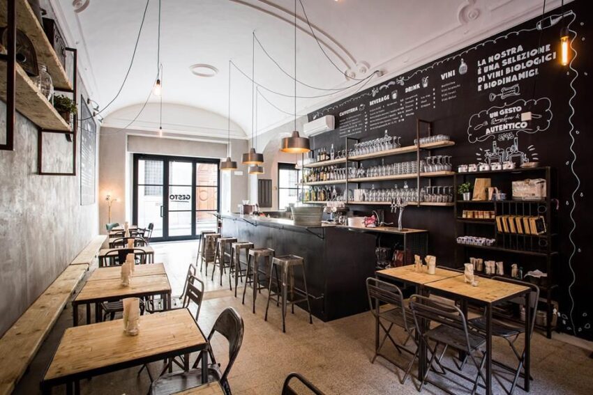 In effetti, in questo caffè ristorante ogni azione compiuta aiuta nel suo piccolo l’ambiente. Perfino l’architetto Giulia Tognarelli, che ha curato la ristrutturazione del locale, ha scelto la via del risparmio energetico, del basso impatto ambientale e dei materiali di riuso e recupero. L’obiettivo che Gesto si pone è di arrivare il prima possibile a una carta sostenibile del ristorante. Un progetto corale, firmato da un team under 30.