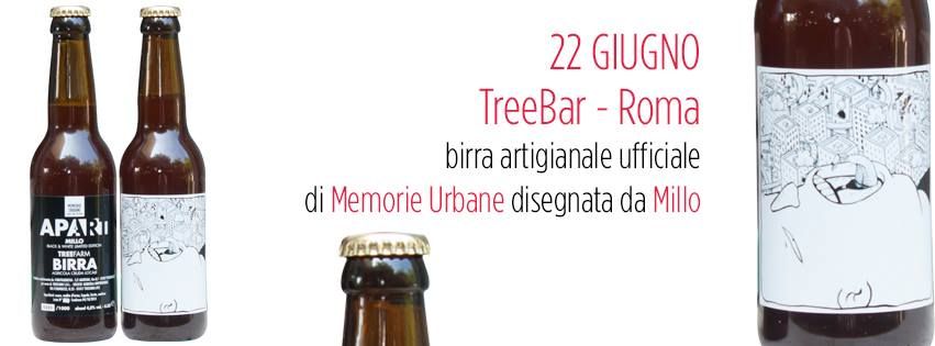 In occasione del We Like Monday di oggi al TreeBar ci sarà la presentazione della birra artigianale ufficiale limitata a 1000 pezzi di Memorie Urbane, disegnata dall'artista italiano Millo, che per l'occasione sarà presente all'evento per firmare le bottiglie.