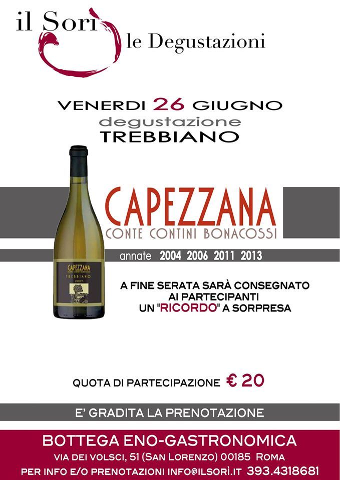 Altra degustazione, questa volta del vino Trebbiano Capezzana, annate 2004, 2006, 2011, 2013.