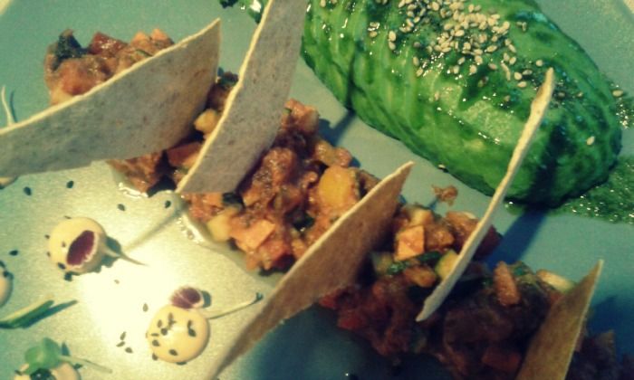 La dieta “raw vegan” esclude completamente dall’alimentazione tutti gli animali e i loro derivati e rifiuta la cottura e la centrifuga come metodi di preparazione: la cottura distrugge fino all’80% dei valori nutritivi. Le temperature degli alimenti devono essere mantenute al di sotto dei 45°C: solo così le proprietà nutritive dei cibi non potranno andare perse. Quindi cosa resta? Molto direi, nella proposta di una cucina creativa e gustosa: nei nomi dei piatti troverete termini come “calamari”, “burro” o “formaggio” ad indicare le sembianze di alimenti che però con questi cibi non hanno nulla a che fare.