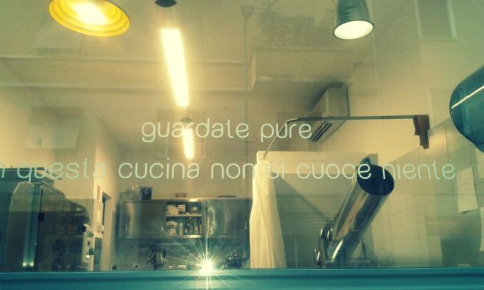 Il locale è di media grandezza, l’ambiente è molto essenziale con tavoli in legno e colori freschi e chiari a sottolineare una ricerca di “naturalezza” anche negli arredi con sedie di formica che richiamano l’idea di un sobrio modernariato. La frequentazione è molto varia ma piuttosto giovane: da famiglie con bambini a coppie e gruppi di amici.