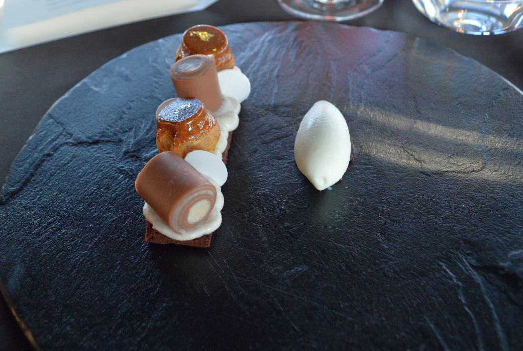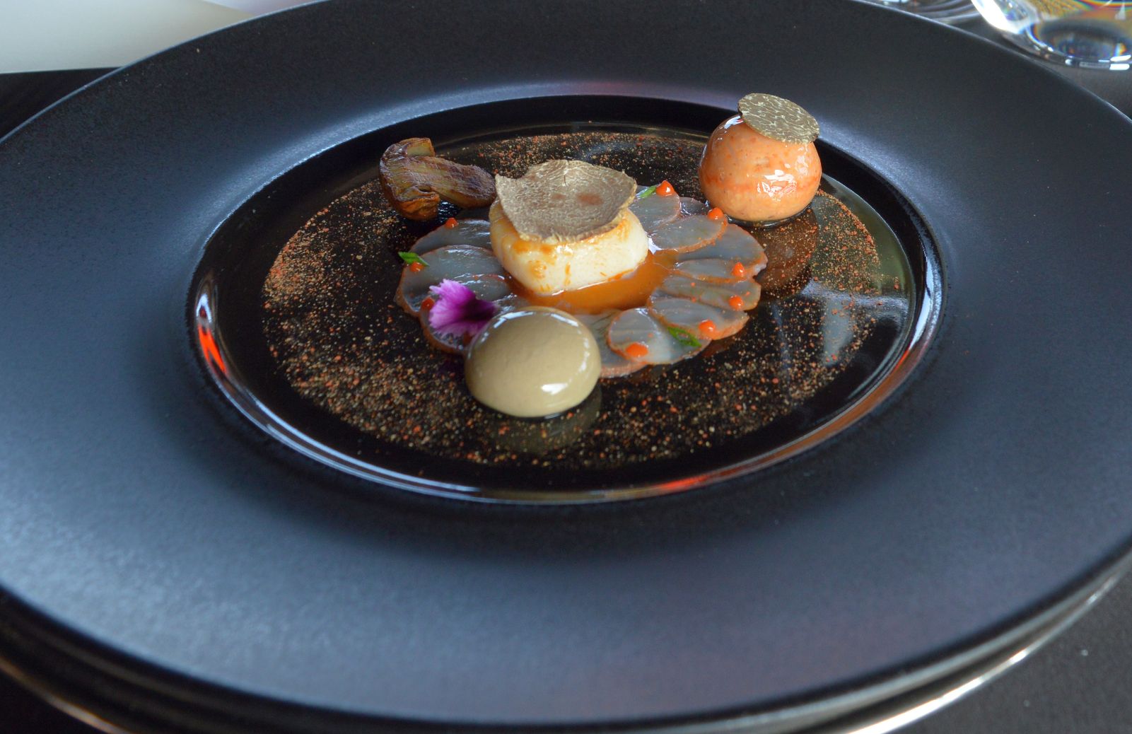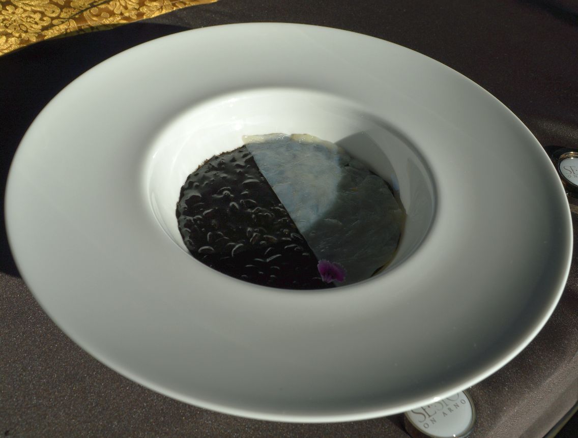 Basti pensare al carpaccio di capesante, crostacei e consommè, funghi al foie gras salsa di arance e barbabietola con verdure di stagione acidulate dove nessun ingrediente sovrasta gli altri. Un equilibrio che non è solo formale ma anche sostanziale. Rappresentativo della fase evolutiva di Lorenzini è di sicuro il risotto al nero di seppia e sfoglia di calamaro, a dir poco yin & yang.