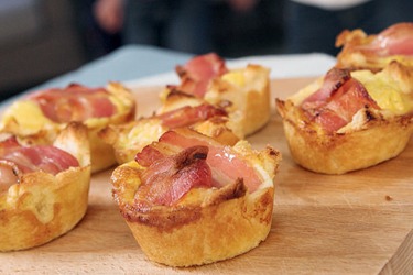 Sgrassate le fette di pancetta adagiandole su una teglia con carta forno e cuocete in forno preriscaldato a 200 gradi per 3 minuti. Una volta ammorbidite adagiatele sopra il composto d’uovo preparato formando una rosellina e infornate in forno ventilato caldo a 170 gradi fino a doratura.