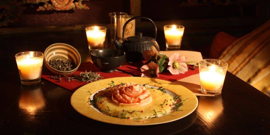 Per un Capodanno all’insegna della cucina fusion asiatica, ecco il cenone di Shambala con un menu a base di sashimi di tonno ai semi di coriandolo e pepe rosa e salsa di tamarindo, po piah sod, il sushi vietnamita in carta di riso ripieno di mango, carota, cetriolo e salmone o il gai hor bai toey, fagottini di pollo fritti marinati agli aromi in foglie di pandani con salsa di soia dolce e sesamo. Per dolce panettone della pasticceria di Ernst Knamm; da bere Franciacorta Cuvée Prestige Ca’ del Bosco, Gewurztraminer e Peppoli Chianti.