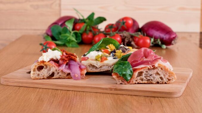 Lasciatevi dunque guidare dal palato e scegliete tra una Lombardia, con Gorgonzola, prosciutto cotto e olio evo, ed una Sicilia, con pomodoro San Marzano, fiordilatte, olive caiazzane, capperi di Salina, alici di Cetara, basilico, origano, olio evo. Passate per la Liguria, con pesto genovese, fiordilatte, fagiolini, patate, mollica di pane tostata, pepe e olio evo. Fate un salto nell’Emilia Romagna, con mortadella, squacquerone di Romagna, pistacchio, olio evo, e poi volate fino alla Calabria, con pomodoro San Marzano, fiordilatte, cipolla rossa di Tropea, ‘nuda di Spilinga e olio evo.
