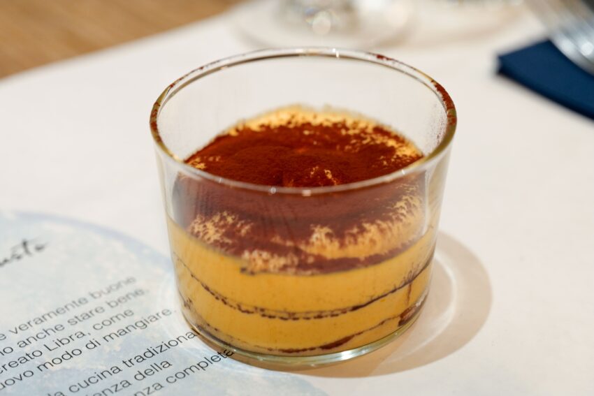 Cos’altro trovate nel menu? Le paste, realizzate con farine monograno, biologiche e fatte a mano, vanno dai 9 ai 9,50 euro: non mancano le Tagliatelle al Ragù. Poi abbiamo le zuppe che vanno dai 6 euro a 6,50 come la Ribollita Toscana servita con pane integrale. Il pesce è cotto a vapore, a bassa temperatura e sottovuoto: merluzzo alla bolognese 14 euro, filetto di trota salmonata 15 euro. La carne è di manzo 100% italiano e proviene da bovini alimentati a erba, il prezzo va dai 9 euro per le polpette tradizionali al sugo con piselli, ai 15 euro della tagliata di manzo (ca. 150gr). I burger hanno un menu a parte: burger vegetariano 9,50 euro, burger di pollo 10 euro e burger di manzo 12 euro. Per i contorni potrete optare per insalate di germogli di soia e pompelmo, cavoletti di Bruxelles cotti a vapore, bietole e spinaci all’agro, purè rustico di patate a 4 euro. E ancora fritto leggero di verdure a 7 euro, tortino di zucca a 6 euro, manzo fumè a 9 euro, sformato di broccoli a 6 euro, crema di pomodori con burrata a 7 euro. Infine abbiamo i dolci che secondo la filosofia di Libra possiamo concederci ogni giorno. Il segreto? Aggiungere più fibre, ridurre i grassi e limitare gli zuccheri. Abbiamo quindi crema di latte, crumble di mele, zuppa inglese, tiramisù e tagliata di frutta (dai 4 ai 5 euro).