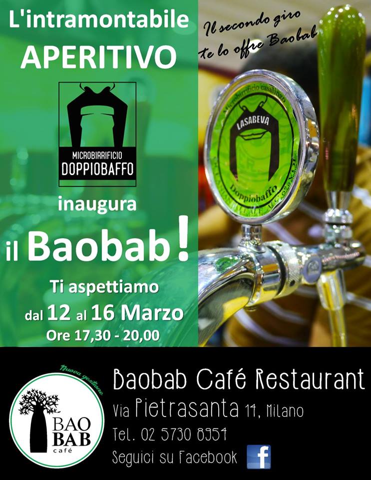 In occasione della Settimana della birra artigianale, il Microbirrificio Doppiobaffo propone l’aperitivo in collaborazione con Baobab Café, che inaugura la nuova gestione e per l’occasione offre il secondo giro di birra.