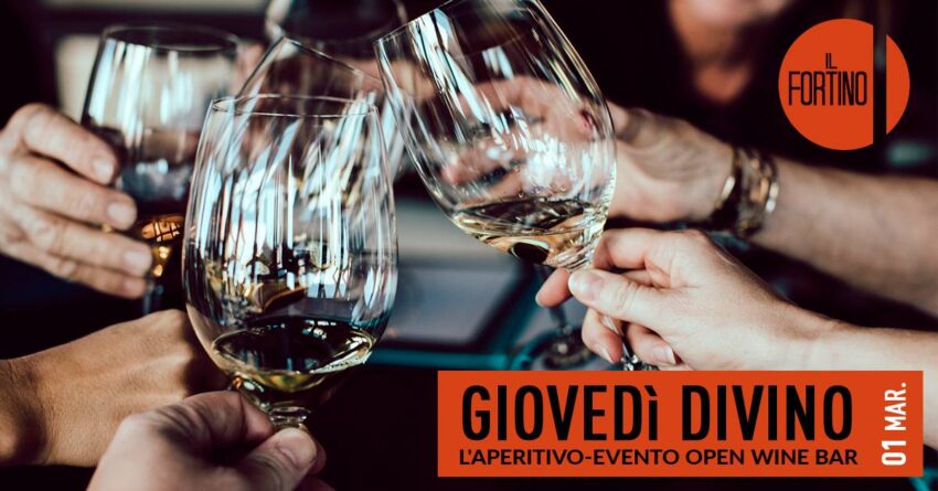 Tappa fissa del giovedì per l’aperitivo è il Fortino: quattro ore di Open Wine. La linea vini comprende una proposta di: spumante:Bellaluna Dezzani, bianco:Verdeca Puglia, rosso:Negroamaro Primitivo Salento, rosè: Dezzani (Cantine ROCCA VINI). Il buffet di accompagnamento prevede specialità italiane ed asiatiche.