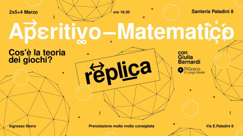 Aperitivo matematico questa sera da Santeria Paladini 8 con Giulia Bernardi (PiGreco – il Luogo Ideale) che presenterà il suo nuovo libro “E’ Tutto Un Gioco”, e vi spiegherà la Teoria dei Giochi.