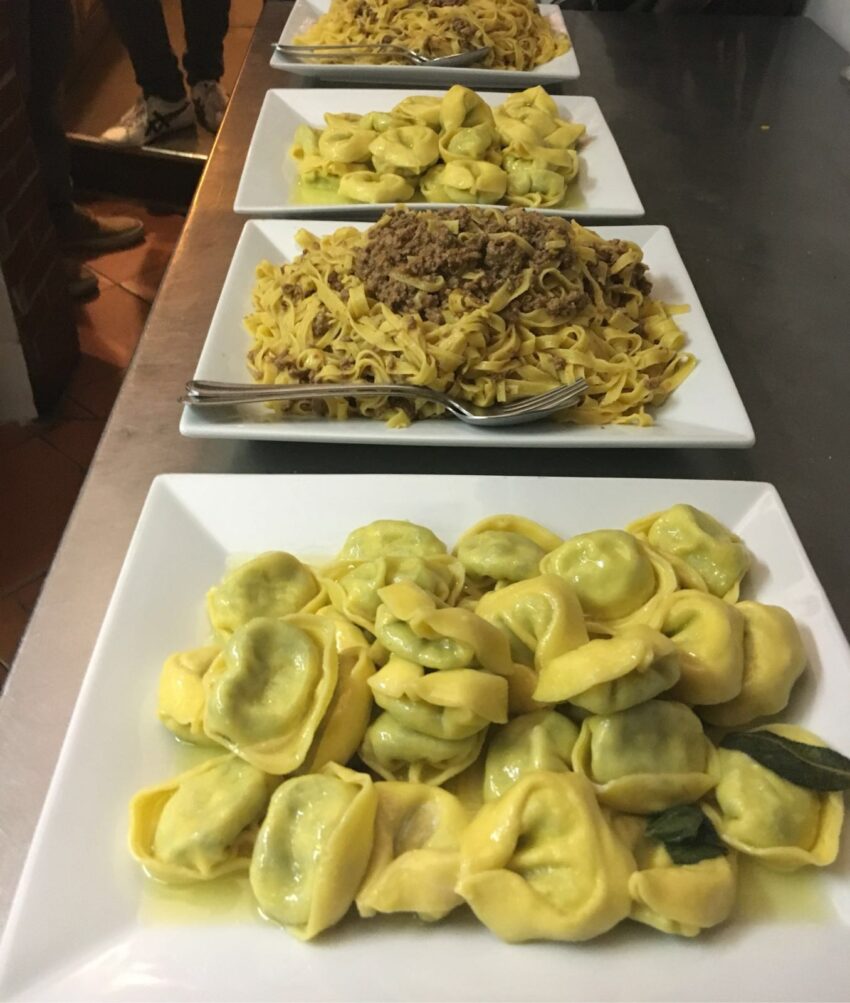 A Pasquetta si replica, ancor meglio ché è anche occasione di gite fuori porta. Il menu si compone di antipasti più tradizionali (crescentine con affettati e formaggi), bis di primi e dolci da credenza con lo zabaione.