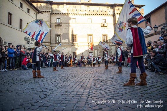 L’antico borgo di Vignanello, in provincia di Viterbo, si vestirà infatti a festa per due fine settimana consecutivi (2-3-4 e 9-10-11 novembre), tornando indietro nel tempo. Tra rievocazioni storiche ed antichi mestieri, saltimbanchi, giocolieri ed artigiani si potranno anche visitare il centro storico, il Castello Ruspoli e i “Connutti”, avventurandosi nei meandri della Vignanello sotterranea. Le vecchie cantine scavate nel tufo torneranno ad ospitare gli antichi mestieri del Rinascimento ospitando un itinerario districato per le strette vie del centro storico e che prevede dimostrazioni pratiche, giochi rinascimentali e artisti di strada. Non da meno sarà il mercato degli artigiani locali che in abiti d’epoca proporranno ai visitatori manufatti ed eccellenze enogastronomiche lungo Corso Matteotti, e il Bazar per le vie di Corso Garibaldi, dove sarà possibile trovare oggettistica e prodotti tipici. Tra le degustazioni da non perdere quelle organizzate all’interno della Sala Consiliare del Comune (a cura di Carlo Zucchetti e Roberto Petretti), alla cooperativa Viticoltori dei Colli Cimini, dove si produce vino novello sia bianco che rosso, e al frantoio Cioccolini. Durante i pranzi e le cene in programma a Vignanello durante la Festa, sarà protagonista il Pamparito, insignito dal 2016 prodotto DE. C. O. di produzione, ovvero il pane vignanellese, lavorato e prodotto in loco. Il pamparito sarà il giusto companatico per i “Menu Festa” proposti, con prezzi a pasto completo che variano dai 20 ai 30 euro, nei seguenti locali: Segrete del Castello, Taverna del Novello, Tana dello Sbandieratore, Osteria Angeli Custodi, Cantina del ’79, Ristorante Cantina del gusto, Ristorante Palazzo Pretorio e Ristorante Il Vicoletto 1563.