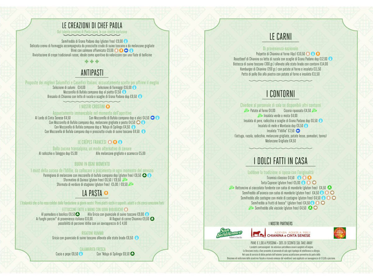 Elencati i piatti del giorno e portati i menu, Andrea tiene a spiegare origine e storia di ogni pietanza proposta, consigliando i piatti forti e illustrando la filosofia de L’IdillioLa Trattoria – Vineria L’Idillio nasce nel 2005, quando Andrea e Vincenzo Torcasio decidono insieme alla madre di aprire il ristorante in cui la tradizione romana si sposa con nuove sperimentazioni culinarie, rispettando i rigidi dettami di qualità e provenienza accertata dei prodotti utilizzati in cucina. La mamma Paola Lauro è lo chef che realizza i piatti aggiungendo al menu nuovi sapori e vecchie specialità.