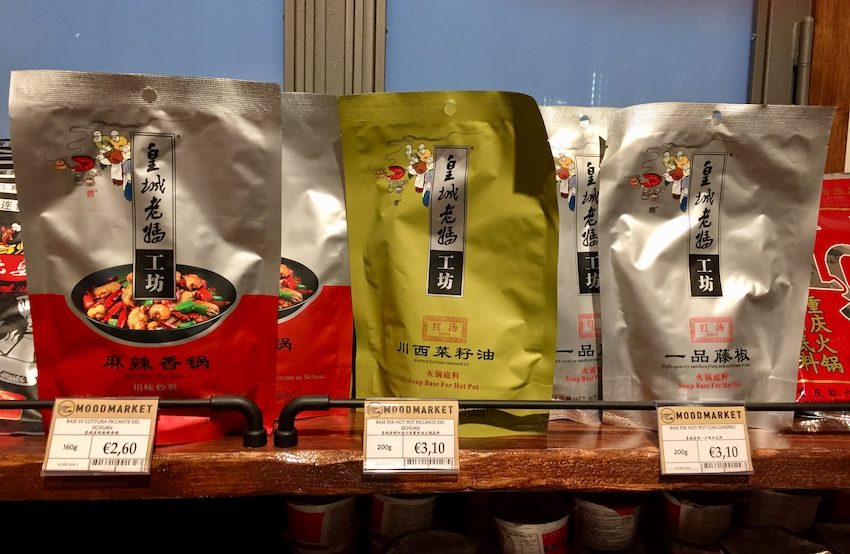 Noodles, tofu e ortaggi freschi e secchi (come i funghi shiitake) possono essere la base di zuppe casalinghe aromatizzate con i preparati in busta (2,60-3,10 euro) che riuniscono miscele di spezie, più o meno piccanti, per ricreare la perfetta hot pot, come quella che si gusta, poco lontano, da Little Lamb.