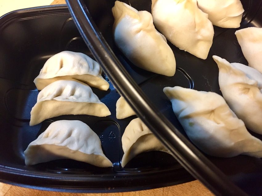 Se volete servire i ravioli asciutti, lessateli in semplice acqua, scolateli e conditeli qualche goccia di salsa di soia (a partire da 2,80 euro) che fa bella mostra di sé sullo scaffale dei condimenti jap insieme, tra gli altri, a teriyaki (4,50 euro), da provare su carne e pesce a bocconcini, e salsa wok (3,20 euro), per saltare le verdure a julienne.