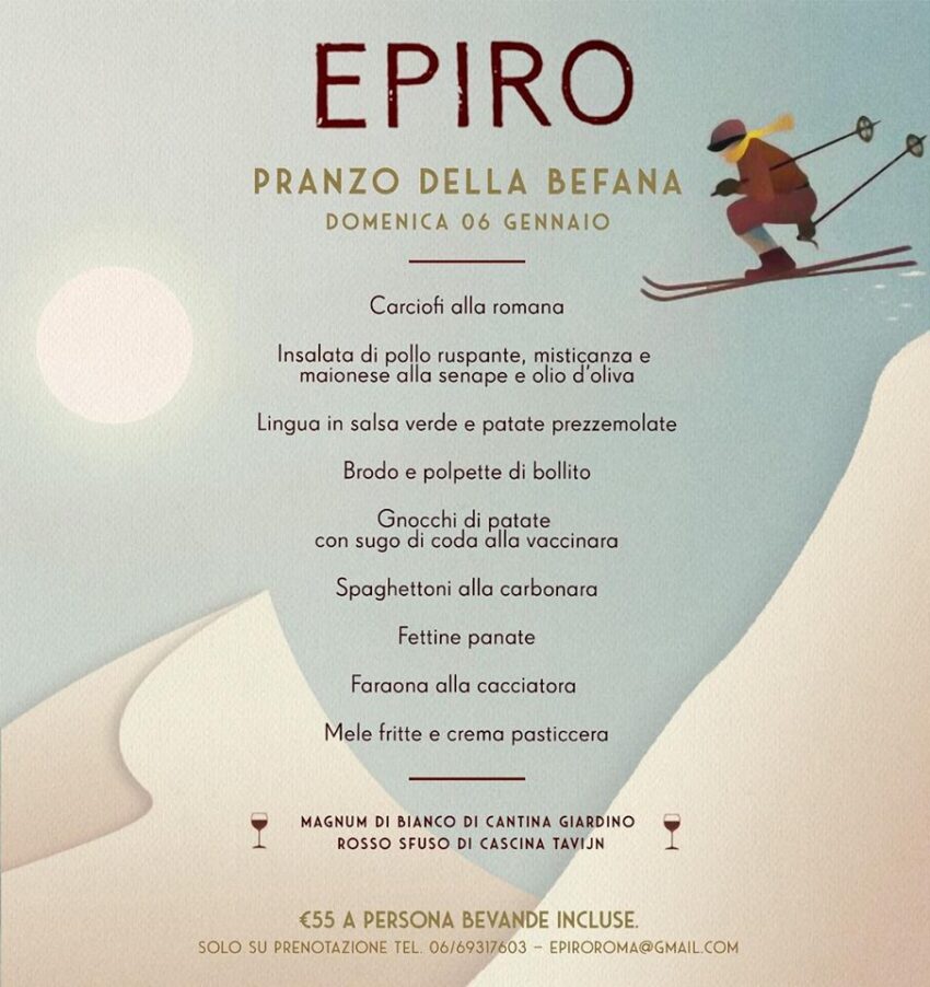 Terza edizione del pranzo della domenica da Epiro, questa volta in occasione della Befana. Il menu in foto.
