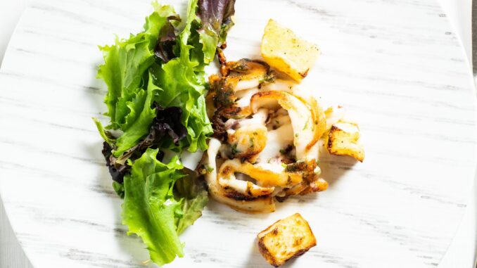 Menu degustazione di proposte speciali ideate dallo chef del bistrot di Prati per Ferragosto: Benvenuto dello chef; degustazione di olio con pane homemade; degustazione di sali dal mondo; cappesante spuma di avocado, polvere di maialino iberico, mango leggermente piccante e area di rucola; carpaccio di salmone, yogurt, semi, senape, pesca; paccheri cacio e pepe con gambero rosso, topinambur, lamponi e basilico; tentacoli, patate viola e americana, nero di seppia, mayo ai lamponi, basilico in tempura; predessert frolla e limone; dolce arrivederci.