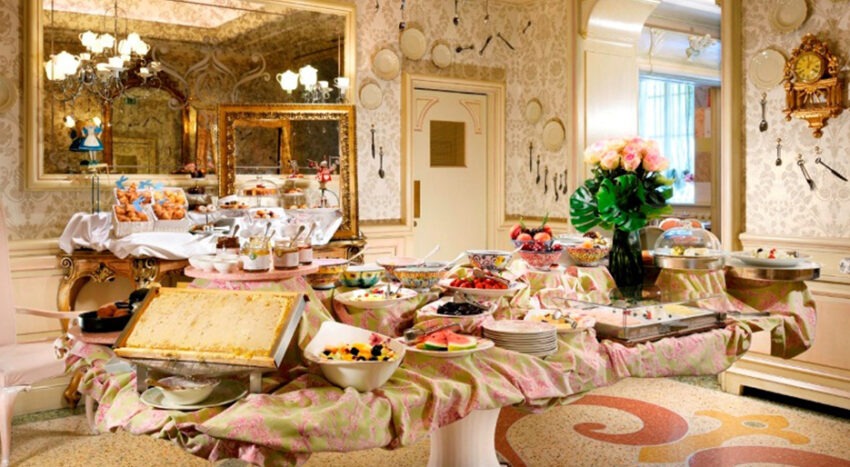 Sentirsi a casa in una location lussuosa è possibile e il brunch a buffet dell’hotel Château Monfort ne è la prova. La domenica tutto al Ristorante Rubacuori viene allestito con estrema cura e piatti tipici delle colazioni internazionali incontrano la tradizione mediterranea. Tutto preparato dallo chef Domenico Mozzillo, tra affettati, formaggio, primi, contorni, pancake, muffin, torte dolci e salate, succhi e tè, uova alla Benedict e hamburger, insalate e omelette farcite. Ancora cannelloni, polpo, mozzarella in carrozza.