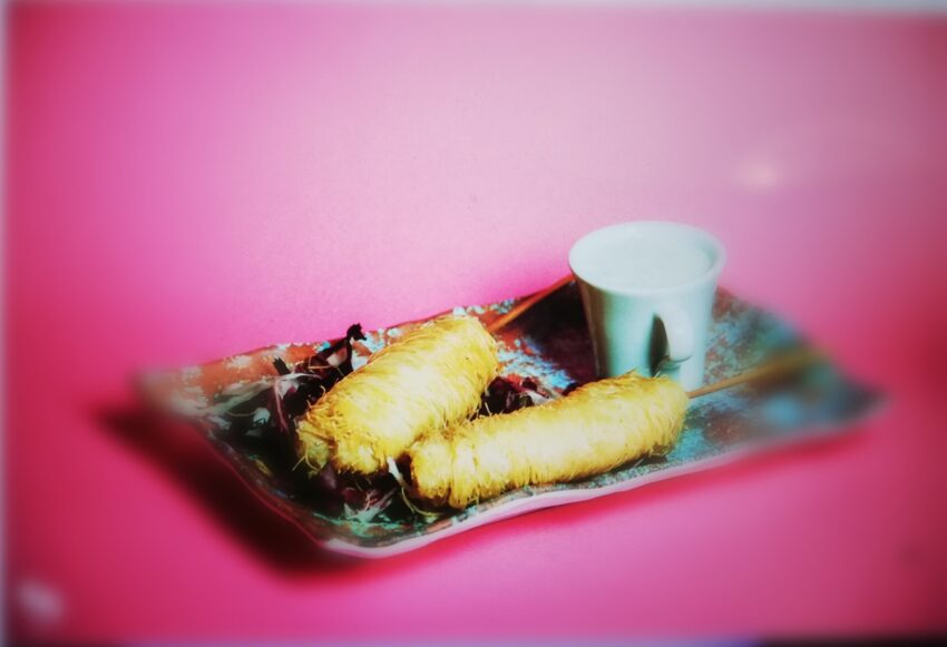 Dalla tradizione araba viene proposto il Kibe (polpette fritte di bulgur ossia grano cotto, e macinato di manzo speziato – 8 euro), si passa al Mini Tajine (agnello con limone marinato, coriandolo fresco, cotto e servito nel tradizionale tegame marocchino – 14 euro) ed infine il Baccala Kataifi (spiedini di baccala’ avvolti in pasta Kataifi – 12 euro).