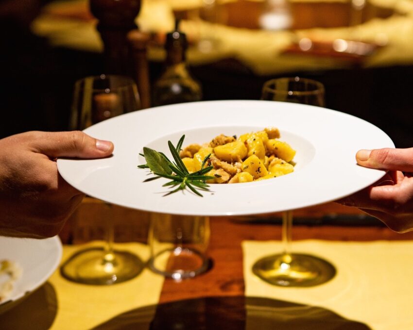 Per chi volesse strafare l’opzione migliore è puntare all’Enoteca Pinchiorri: non c’è luogo a Firenze che possa batterla in quanto a bellezza, accoglienza e sofisticatezza. Tre stelle Michelin e una sapienza unica. Lasciando al sommelier la scelta dei vini, qui davvero importanti e di altissimo livello (si parla di quasi 60 mila bottiglie), potete optare per un menu degustazione con 7/9 portate ( 275/290 euro a persona, vini esclusi) o per il menu alla carte, dove non potete perdere le code di scampi crude e cotte(110 euro), gli spaghetti alla chitarra con frutti di mare e crostacei, briciole di pane e bottarga di muggine (95 euro) oppure il risotto con crema di cavolfiore (90 euro), mentre per secondo l’astice in salmì, il piccione in crosta di fave di cacao e sale (110 euro) o la faraona disossata e glassata alle olive (90 euro). La pasticceria è deliziosa, tutta, e degno di nota “il nostro fiore” (35 euro). In occasione di San Valentino la cucina propone anche un menu speciale (285 euro a persona, bevande escluse).