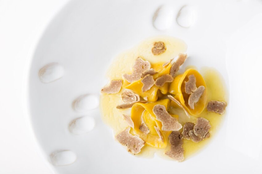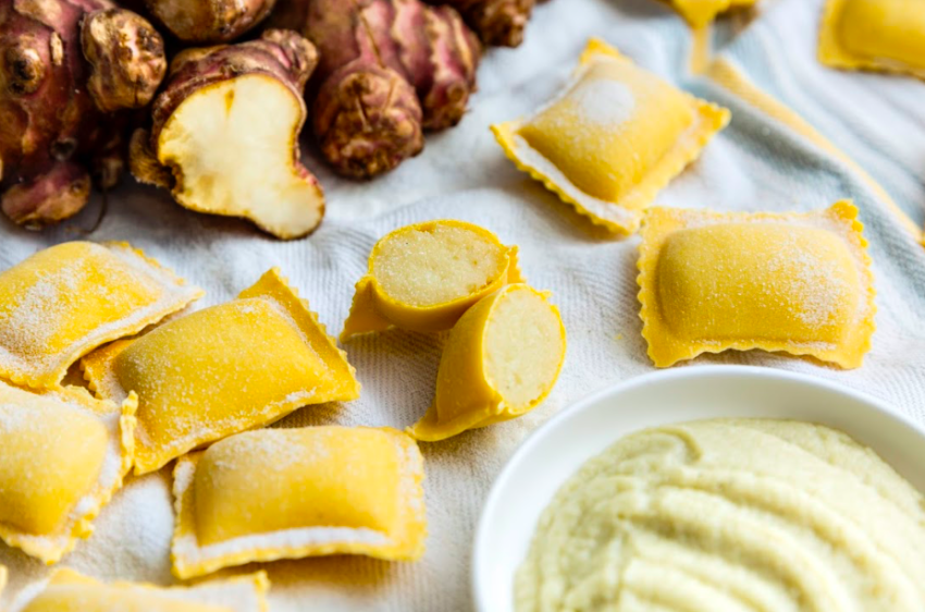 Continua il ciclo di eventi “Assoluto” del Pastificio Secondi, dedicato questa volta al topinambur. Nella giornata di domenica 8 marzo con il corso “Cuciniamolo insieme” al Pastificio si prepareranno due ricette: Raviolo assoluto di topinambur con baccalà sfogliato, cedro semiglassato, chips di tobinambur e pepe selvaggio del Madagascar (Emporio delle Spezie); Raviolo assoluto di topinambur con zucca in due consistenze, cardoncelli e dukkah (Emporio delle Spezie).
