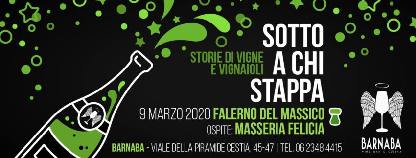 Continua il ciclo di degustazioni da Barnaba con la presenza dei produttori e guidate Monica Coluccia e Alessio Pietrobattista. Il 9 marzo per il terzo incontro protagonista la Campania con Monica Coluccia e i vini di Masseria Felicia. Troverete in assaggio due etichette simbolo della produzione aziendale: Falerno del Massico Bianco Anthologia 2018 – 2017 – 2016 – 2015; Falerno del Massico Rosso Etichetta Bronzo 2013 – 2011 – 2010 – 2009. In apertura e in chiusura della degustazione sono previsti assaggi dalla cucina.