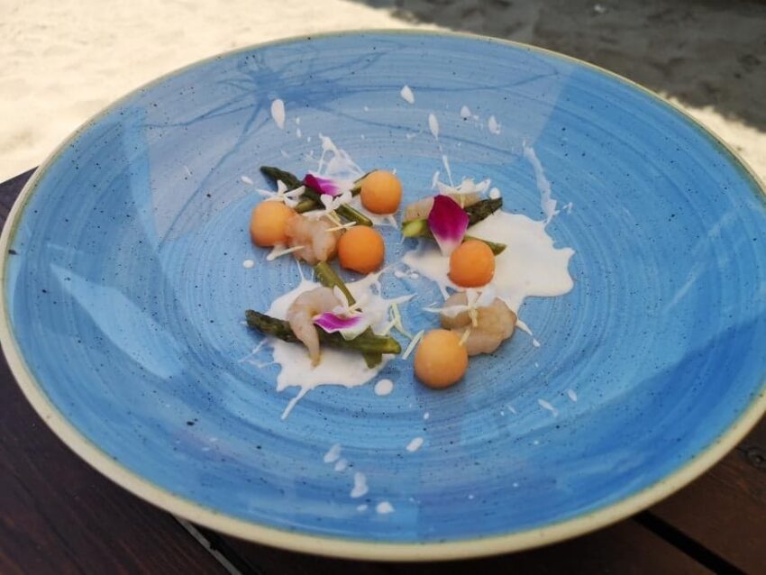 Vi consigliamo di provare: il gambero bianco, yogurt, melone e asparagi (12), la triglia con formaggio erborinato, frutta secca e albicocca (13) e la tartare di salmone, latte di cocco, passion fruit e curry (13).