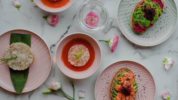 Il suo sogno adesso è realtà, in un progetto tutto al femminile, costruito intorno alle due colonne portanti (intuibili dal nome) del Rose Tartare Bar. Partiamo con la prima: il rosa. Il nuovo ristorante è total pink: dalla carta da parati al colore degli ambienti, dai componenti d’arredo al design degli oggetti. Ma perché proprio il rosa? Carlotta non ha dubbi: “Nasce tutto dai miei viaggi che sono per me una continua ispirazione. Ad Amsterdam, a Londra, in Giappone stanno nascendo locali improntati su questa tematica. Hanno aperto anche a Milano, mentre a Roma mancava. È vero, c’è Tiramibloom, ma è un locale completamente differente. Il mio obiettivo è quello di portare qualcosa di fresco e nuovo”. Tre donne alla guida e rosa ovunque: un binomio naturale.
