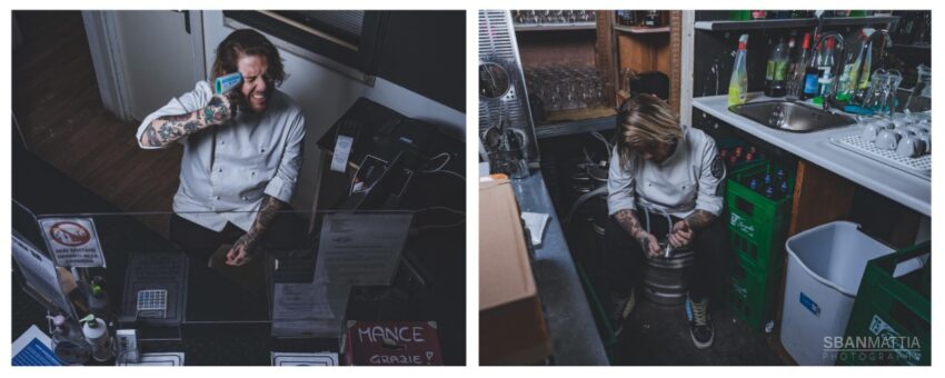 Le foto di Daniele e SbanMattia sono scattate all’interno della ex torrefazione che sorge nei pressi della Stazione Tuscolana, proprio dove oggi ha sede Pizzeria Frontoni e sono state anticipate da un video pubblicato durante la prima parte della pandemia. Una voce, anzi un volto e dodici scatti per ricordarsi che la crisi non colpisce “la ristorazione”, ma colpisce singole attività e persone, con un nome e un volto.