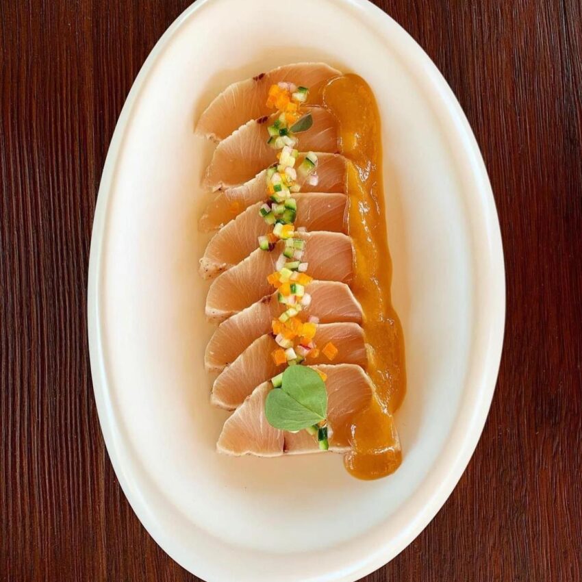La cucina punta tutto sull’internazionalità, con piatti Nikkei espressi, un mix di ingredienti e profumi:  “lime, mais, patate, alghe si unirono ad alghe, dashi e salsa tosazu per dar vita a questa nuova cucina”.