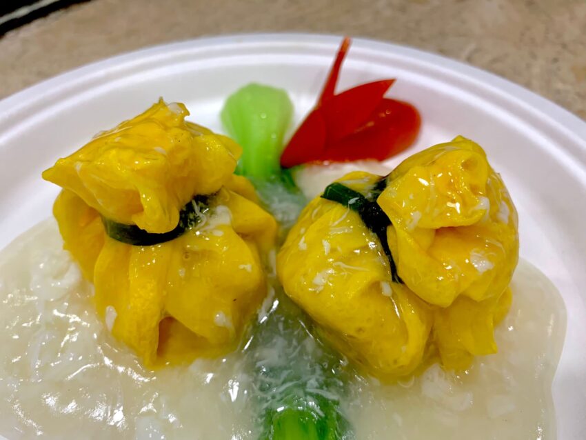 Questi sottilissimi ravioli rappresentano una valida alternativa per i celiaci, grazie alla base del loro impasto, composto da farina di riso e farina di mais, a cui vengono aggiunti acqua e sale. Una volta che le sfoglie sono pronte vengono lasciate raffreddare, e infine tagliati i quadrati classici che poi vengono chiusi per creare i fagottini. Il ripieno è formato da manzo, peperoni ed erba cipollina: il manzo viene marinato con vino di riso, sale, zucchero e albume, che aiuta a mantenere la morbidezza. Dopo la marinatura vengono aggiunti salsa di ostriche, olio di sesamo, vino di riso, olio di semi, acqua, brodo di pollo, salsa di soia chiara e scura, pepe bianco. Il tutto poi mischiato per un quantitativo abbondante di tempo, e infine messo nel raviolo che, in ultimo, viene cotto al vapore.