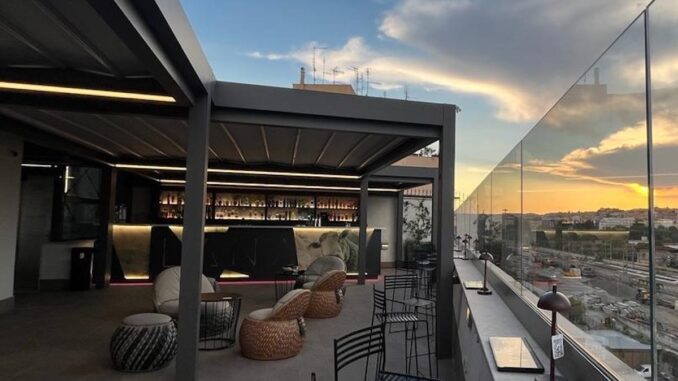 Lana a Roma. Da diverso tempo ormai, la zona intorno al Gazometro vive un fermento ininterrotto. Oltre ai murales, infatti, qui sono spuntati anno dopo anno tutta una serie di locali che dalla mattina fino alla notte animano il quartiere. E passeggiando lungo via del Porto Fluviale non ci si rende conto che c’è un nuovo indirizzo da aggiungere alla lunga lista di posti della zona: si deve invece alzare la testa e guardare in alto. L’estate 2022, più di ogni altra, ha consacrato Roma come città delle terrazze: oltre alle tante già presenti, ne sono state aperte di nuove, Alto dell’hotel The First Musica e Terrazza Nainer, tanto per fare due nomi. Anche il quartiere Ostiense voleva avere la sua novità, ed è così che il 12 luglio ha inaugurato Lana, il nuovo cocktail bar sul rooftop di Gus, acronimo di Gasometer Urban Suites, di proprietà della famiglia Sonnino che, cinque generazioni fa, costruì l’intero edificio.