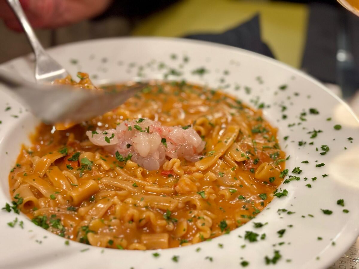 La pasta mista in zuppetta di crostacei crudi e cotti da Cicala